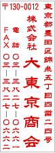 | 請求書などへの金融機関 振込案内印 約22mmX55mm | 枠付ゴム印 字数が少なく余白が多いゴム印は1c㎡=150円 |